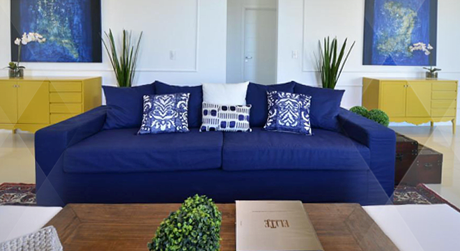 O azul é uma cor clássica que tem um efeito calmante e também é ótima para dar dimensão e profundidade aos espaços. Os diferentes tons de azul promovem sensações distintas – azul claro ou turquesa nos dá sensação de paz e serenidade. Já o azul royal aumenta a estabilidade, segurança e juventude, sendo esse tom o mais ousado dos azuis, ele promove sensação de liberdade e energia.