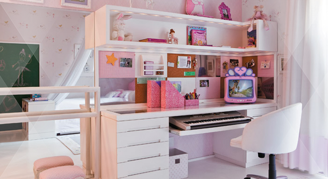E o quarto é o lugar em que a imaginação da criança se solta. Em poucos minutos os meninos vão de um acampamento no meio do mato para uma viagem espacial, enquanto as meninas podem ser princesas em um lindo castelo ou grandes mulheres de negócios. E não importa o tamanho do quarto, o importante é ser um espaço pensando para que elas possam ter um cantinho para todas as suas atividades, seja para estudar, brincar e depois descansar muito!