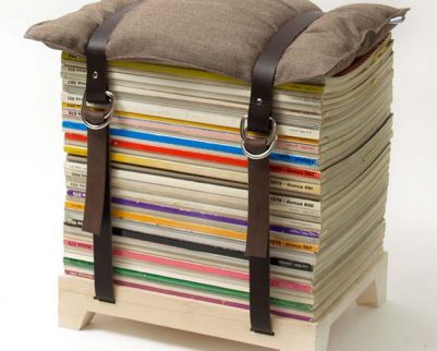 Uma boa dica para complementar a decoração de sua sala é fazer “bancos de revistas”. Além de não danificar as revistas, o banquinho pode ser montado e desmontado