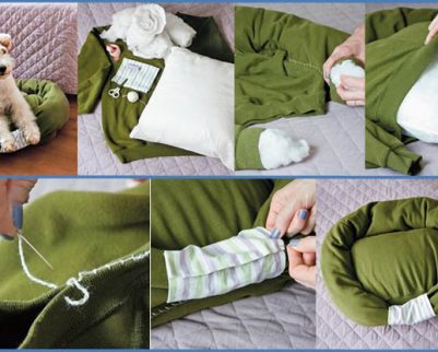 Sabe aquele moletom antigo que você não usa nunca? Transforme ele em uma linda caminha para o seu animal de estimação. É super