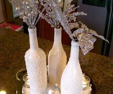 Deixe sua casa com uma decoração linda, reaproveitando e reciclando garrafas. Você vai precisar de: garrafas de vinho, tinta acrílica, esmalte ou verniz vitral branco, cola branca, glitter