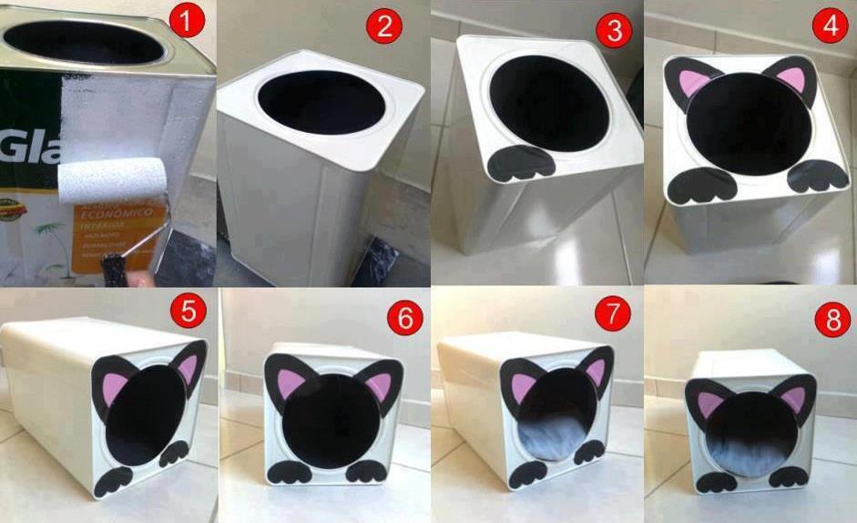 Aprenda a fazer uma casinha para gato reaproveitando lata de tinta. Siga o passo a passo e divirta-se com seu pet.