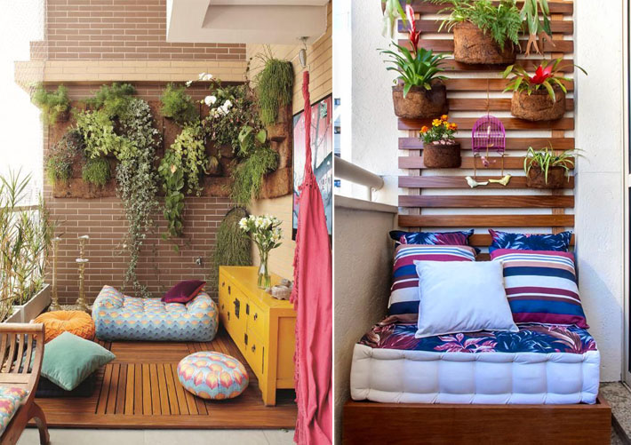 Vasos com tamanhos certos, plantas colocadas na parece, papeis de parede, estofados sob medida para melhor aproveitar o espaço disponível, móveis multiuso como mesas com comporta para pufes na parte de baixo, prateleiras e vasos pendurados, jardins verticais são algumas formas de compor este ambiente e aproveitar melhor o espaço.