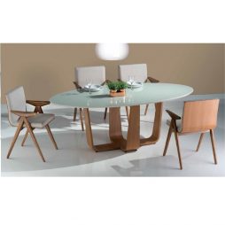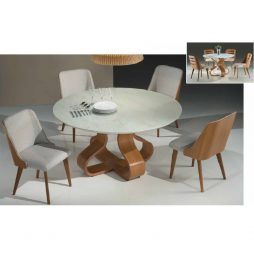 base em madeira maciça. Seu formato em “cruz” permite o encaixe perfeito das cadeiras.